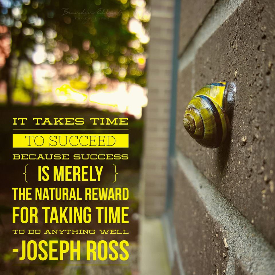 “It takes time to succeed because success is merely the natural reward for taking time to do anything well” -Joseph Ross