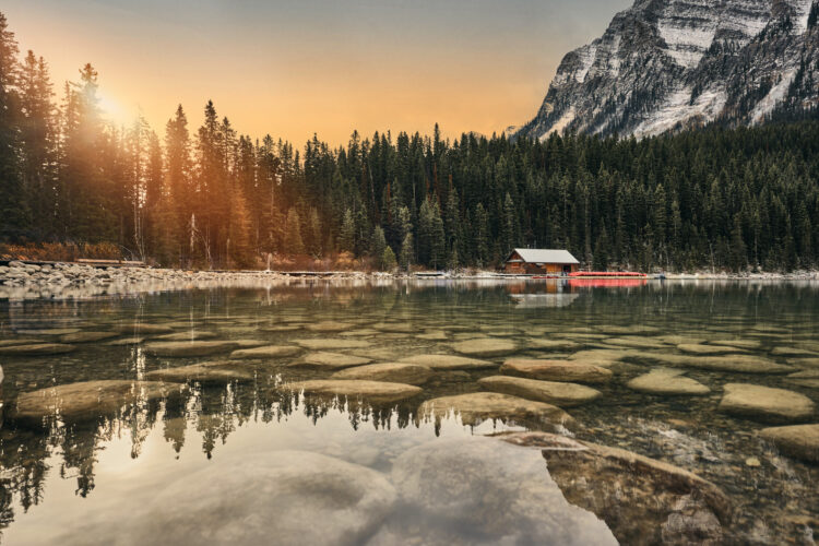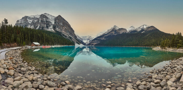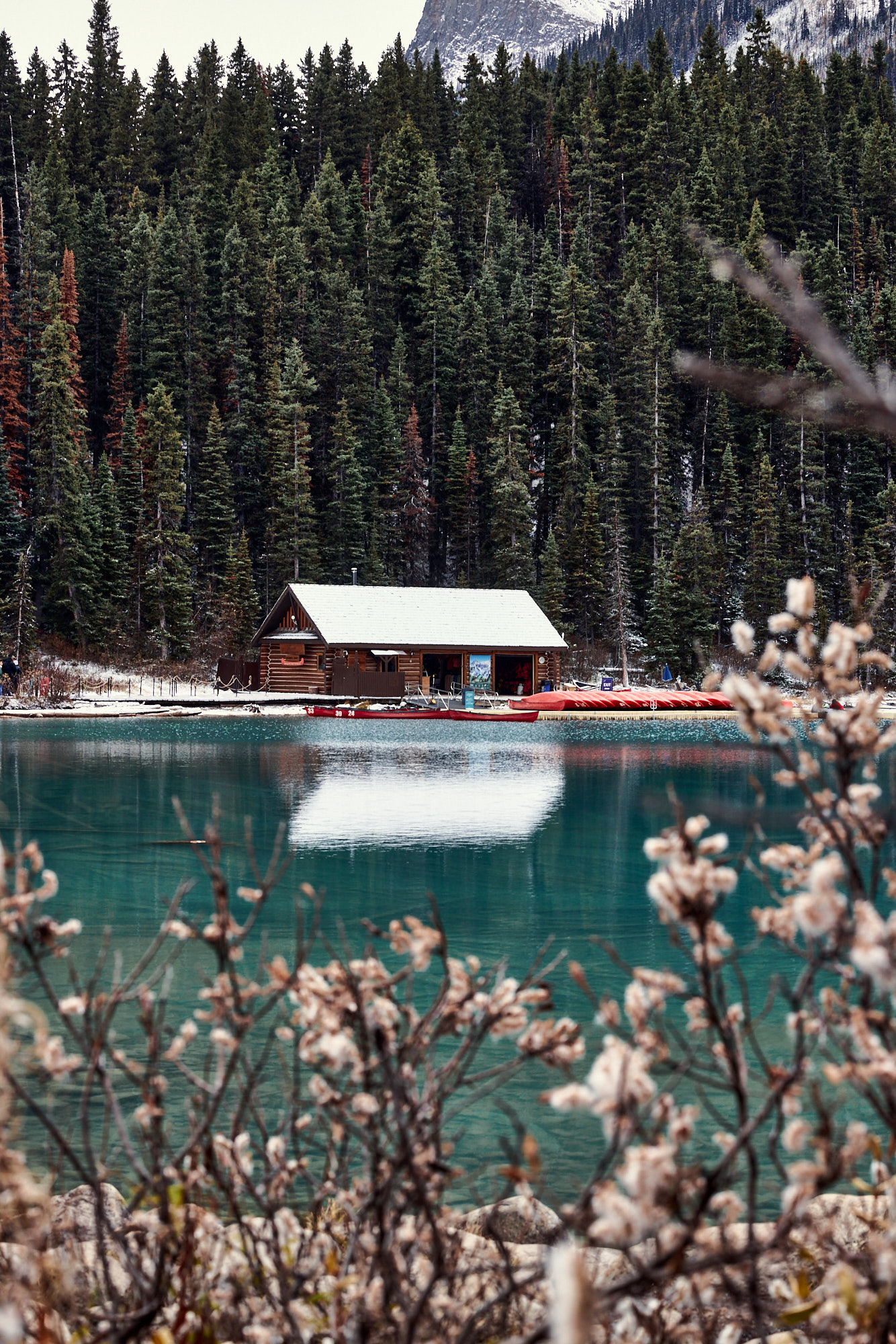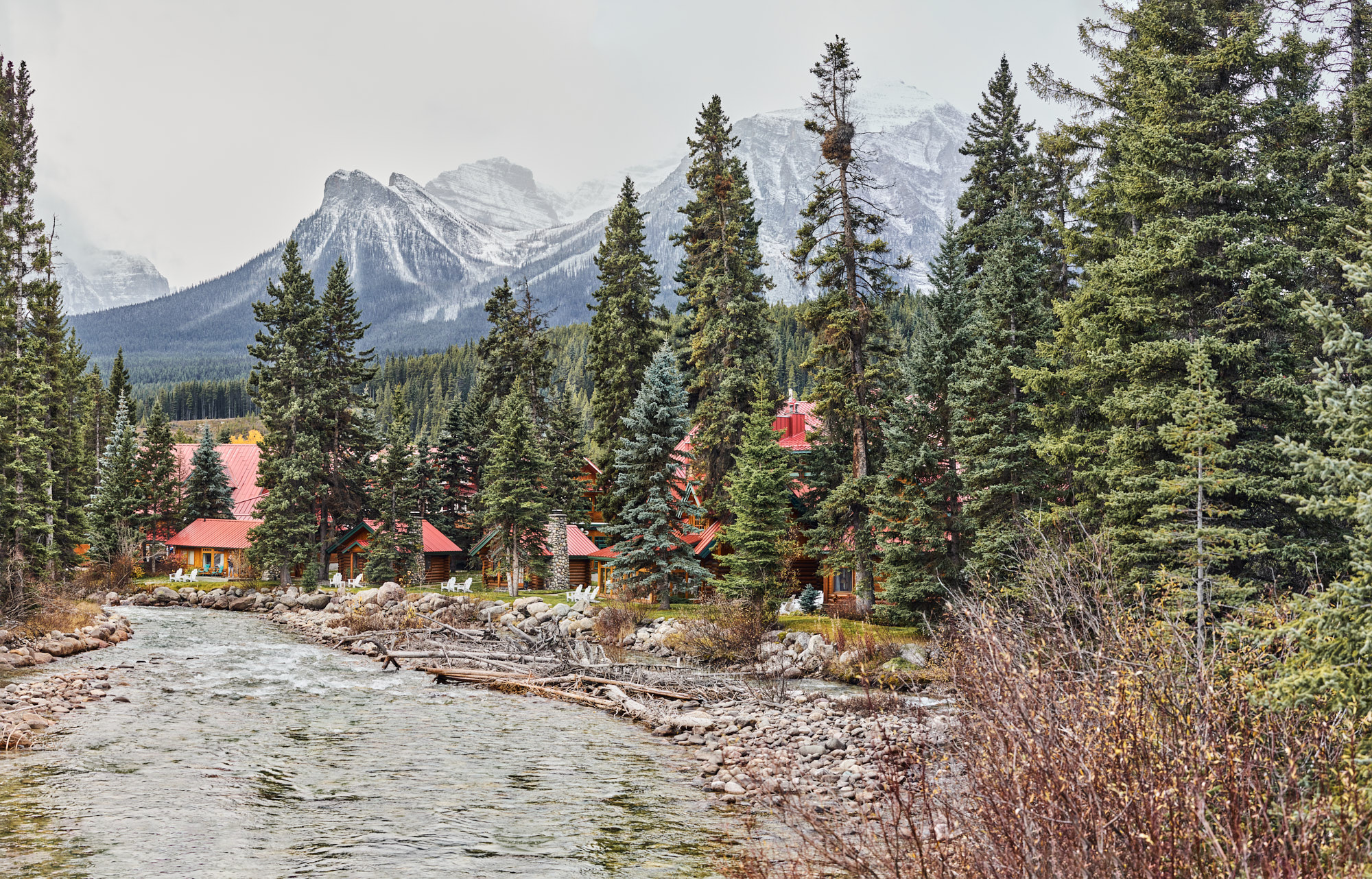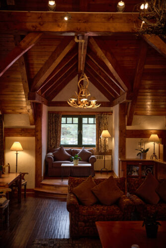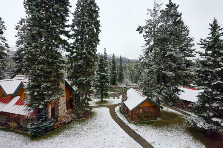 “Known originally as the Lake Louise Ski Lodge, Post Hotel first opened in 1942. Jim Boyce, a well-known guide from Banff, was the builder. He sourced logs for the lodge in Revelstoke and at the headwaters of the Bow River. With a crew of just ten men, using mostly hand tools, the building was completed in a remarkably short time. The war forced a closure soon thereafter and the doors would not open again until 1948.