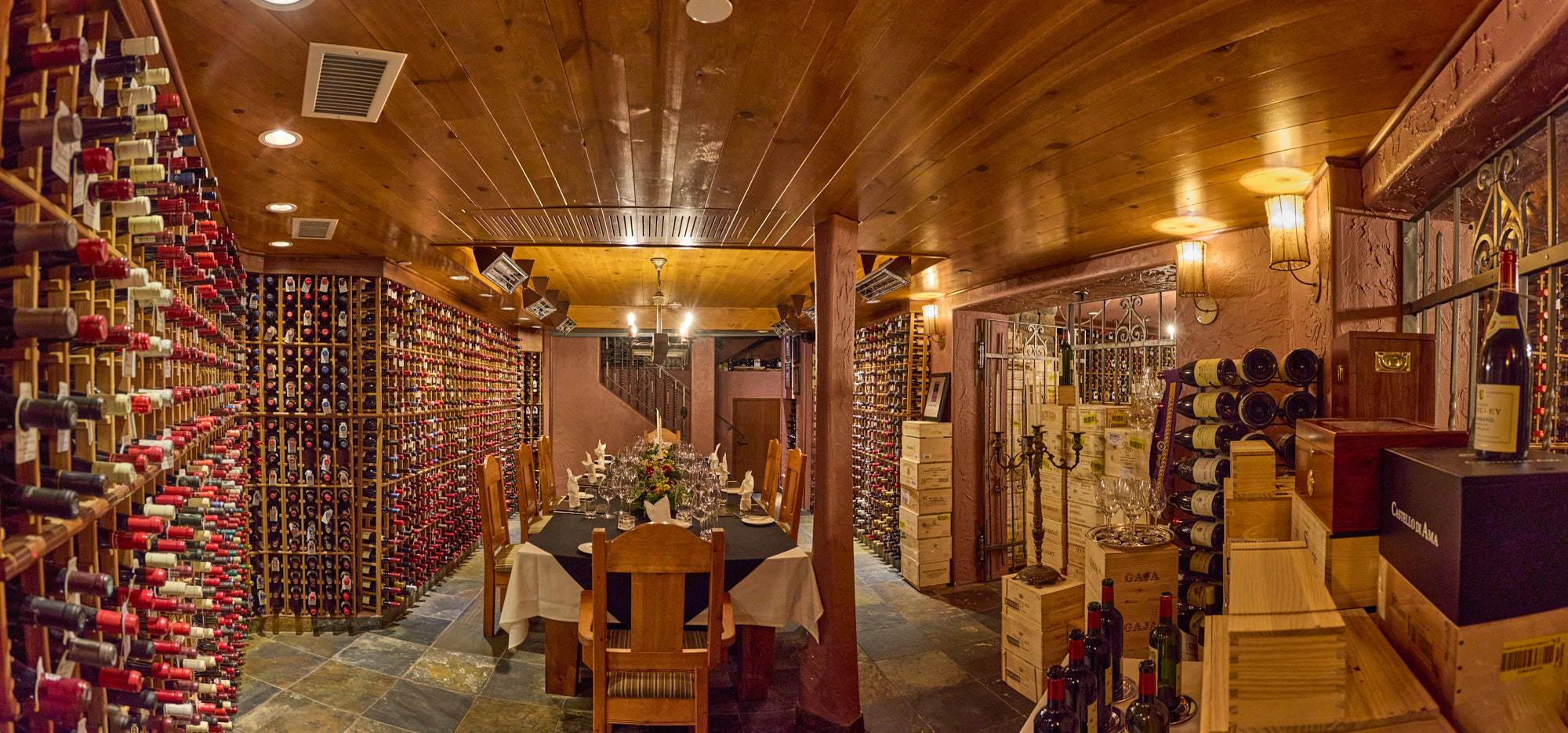 The wine cellar at Post Hotel had grown to one of the most impressive in the country and has become an attraction all on its own. Meticulously curated over the years, the cellar received the Grand Award by Wine Spectator Magazine, an accolade it has retained for over twenty consecutive years. With a collection that had grown to over 25,000 bottles, a magnificent new cellar was opened in 2005.”