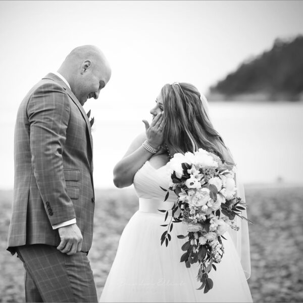 Their biggest and most exciting memory was after a hike up Cypress Mountain to Eagle Bluffs. They had decided to do the hike to help Jenn train for a 3-day hike that she had planned. Rob had a different agenda, he was going to propose at the top of the mountain!! To celebrate her “YES” (he was quite confident), he decided to bring a bottle of wine on the hike. Jenn thought it was quite odd as it was a 3-hour hike! Not very far into the hike, Jenn noticed that Rob kept rushing her up the mountain and was getting annoyed as the pack was so heavy! Little did Jenn know that Rob’s nervousness and excitement were because he wanted to get to the top as quickly as possible! Once they finally reached the top Rob wasn’t sure if he was going to go through with his proposal as there were so many people and crowds. He was nervous and there wasn’t a quieter place nearby so he finally plucked up his courage and got down on bended knee and proposed. Complete silence followed –
