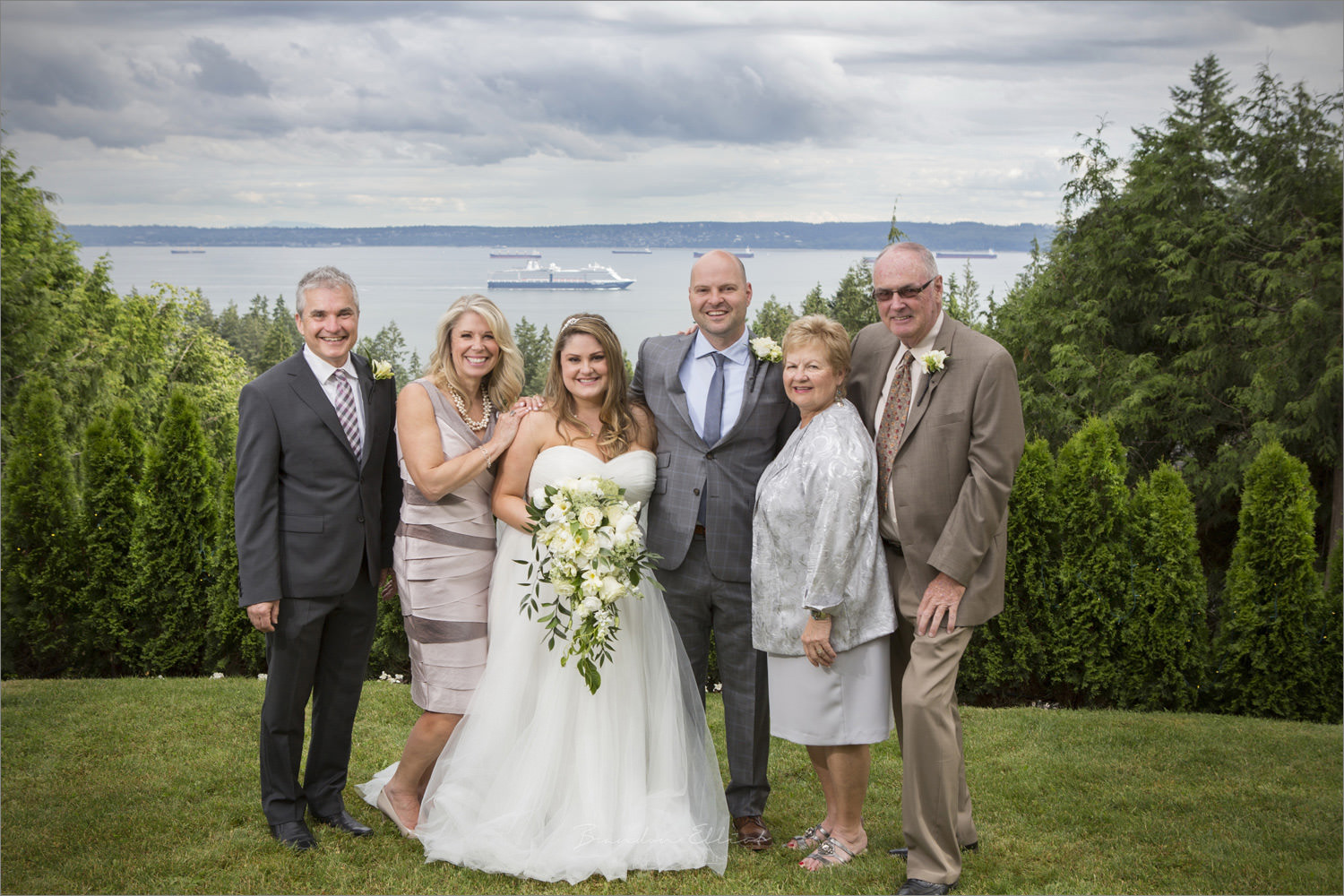 Their biggest and most exciting memory was after a hike up Cypress Mountain to Eagle Bluffs. They had decided to do the hike to help Jenn train for a 3-day hike that she had planned. Rob had a different agenda, he was going to propose at the top of the mountain!! To celebrate her “YES” (he was quite confident), he decided to bring a bottle of wine on the hike. Jenn thought it was quite odd as it was a 3-hour hike! Not very far into the hike, Jenn noticed that Rob kept rushing her up the mountain and was getting annoyed as the pack was so heavy! Little did Jenn know that Rob’s nervousness and excitement were because he wanted to get to the top as quickly as possible! Once they finally reached the top Rob wasn’t sure if he was going to go through with his proposal as there were so many people and crowds. He was nervous and there wasn’t a quieter place nearby so he finally plucked up his courage and got down on bended knee and proposed. Complete silence followed –